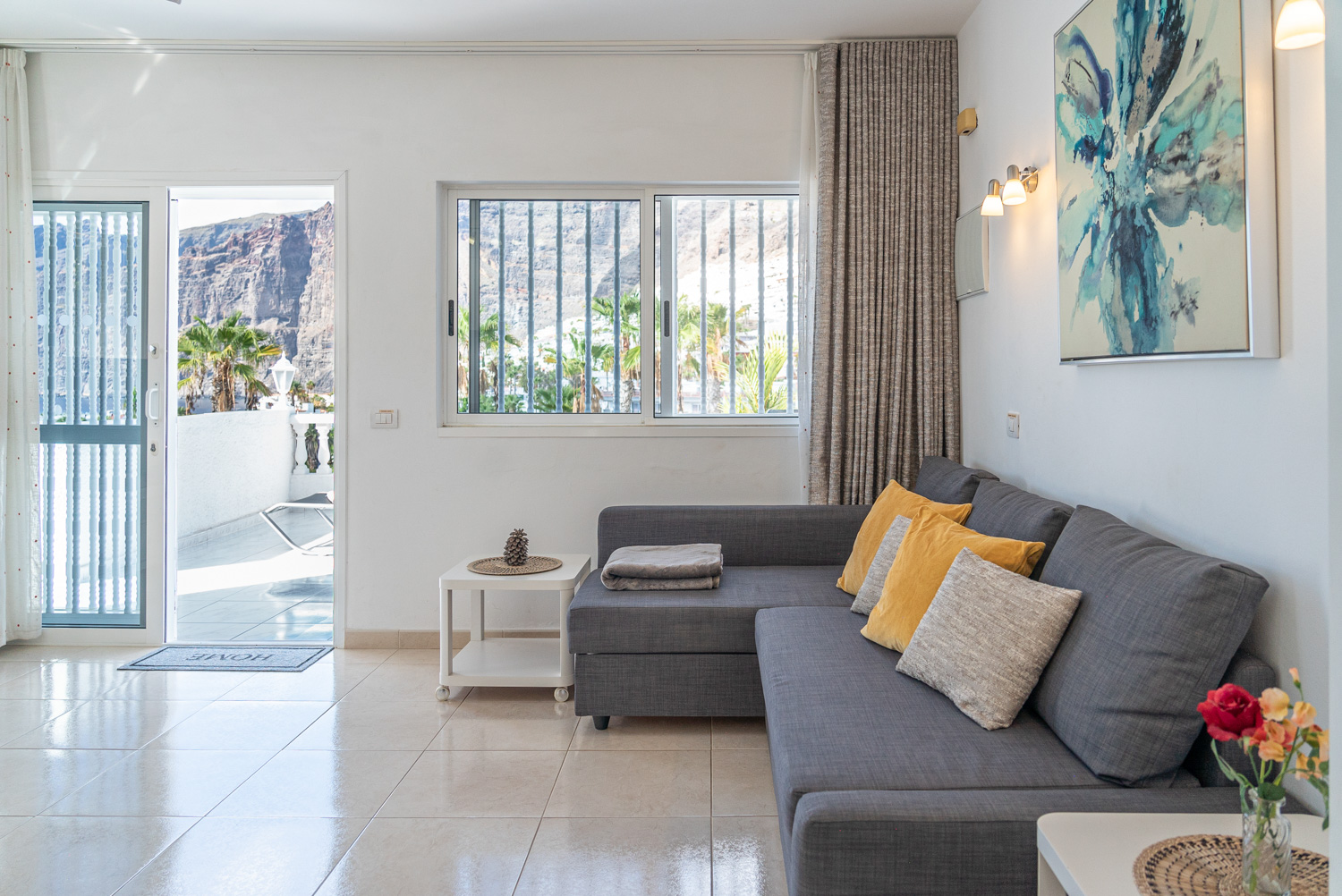 Spectacular terrace view of the famous cliffs, fishing harbour and across the Atlantic Ocean to the island of La Gomera make this apartment outstanding. Our top-floor cozy and specious holiday home is all tastefully furnished and equipped to make your visit comfy and memorable!